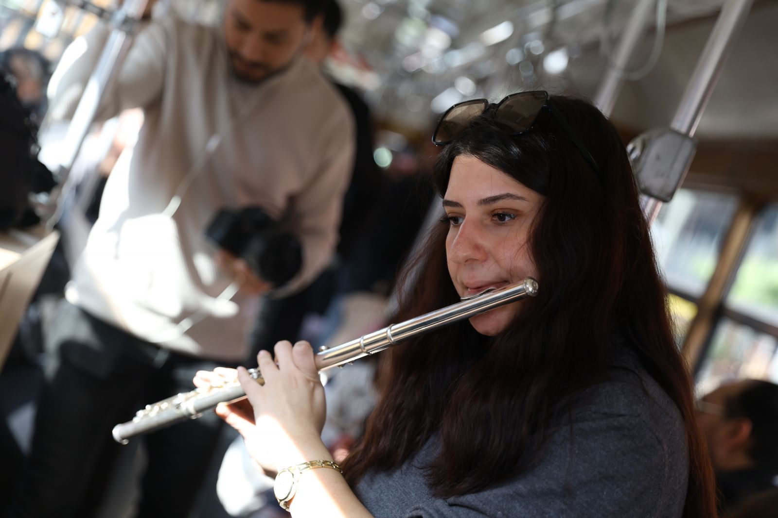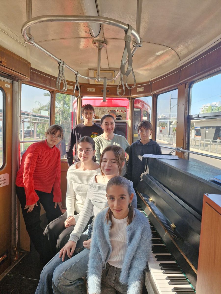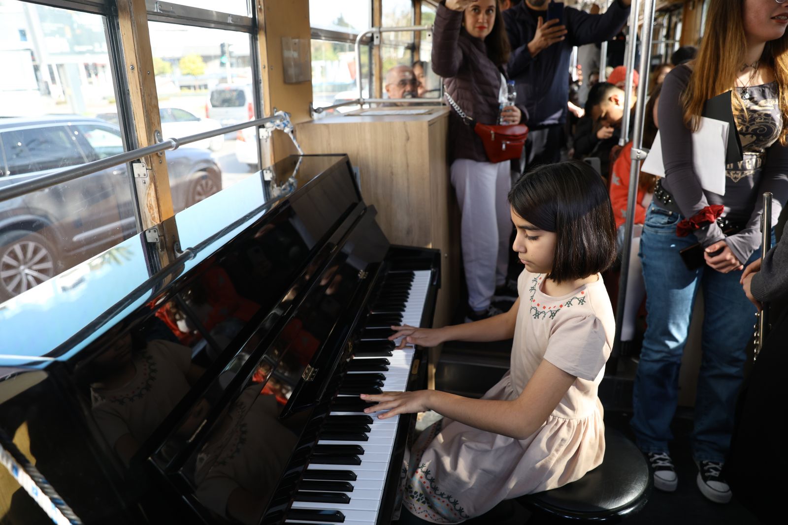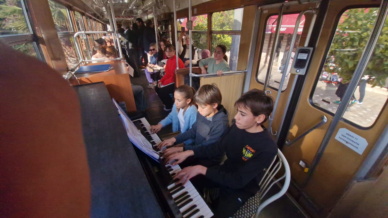 Nostalji tramvayı içine yerleştirilen piyanoda öğrenciler yolculara ünlü bestekarların eserlerini yorumladı. Mezbaha-Müze arası yolculuk yapan tramvayda Rufina Bahadır’ın öğrencileri; Ada İşel, Şerife Roza Sağlam, Mehmet Deniz Sağlam, İsmail Aras Sağlam, Sündüz Su Efe, Tuana Tıraş, Ferah Tığlı birbirinden güzel eserleri çalarak yolculara keyifli anlar yaşattı. Roza-Mehmet Deniz-İsmail Aras Sağlam kardeşlerin 6 el çaldığı Oriental Bazaar ve The Little Sparrow eserleri beğeni topladı. Öğrencilerin çaldığı Üsküdar’a Gider İken şarkısına yolcular da eşlik etti.