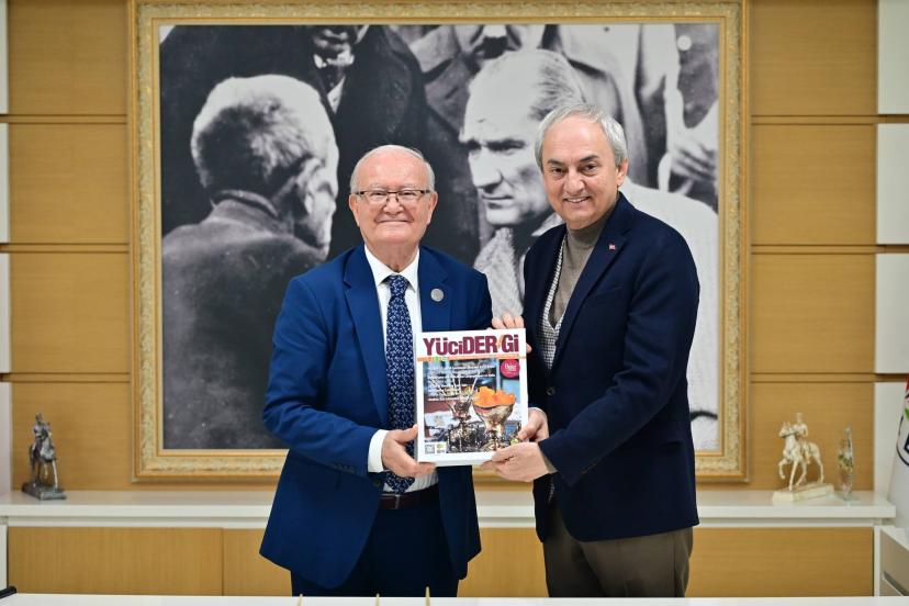 Ziyaretin sonunda, Riyad’da düzenlenen yarışmada “son 30 yılın dünyadaki en iyi dergisi” seçilen YÜciDer-Gİ, Prof. Dr. Yavuz Tekelioğlu tarafından Başkan Kocagöz’e hediye edildi. Bu anlamlı armağan için teşekkür eden Başkan Kocagöz, Prof. Dr. Tekelioğlu’nu takdir dolu bir ifadeyle makamından uğurladı.