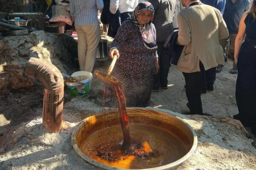 Törenin ardından yapılan hasat etkinliğinde, katılımcılar keçiboynuzu hasadına katıldı, ürünün unu ve pekmezi sergilendi ve davetlilere ikram edildi.