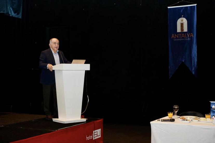 Osman Ayık, Antalya Dayanışma Grubu etkinliğinde Türkiye turizminin tarihini Cumhuriyet’in ilk yıllarından günümüze kadar ele alan kapsamlı bir sunum gerçekleştirdi.
