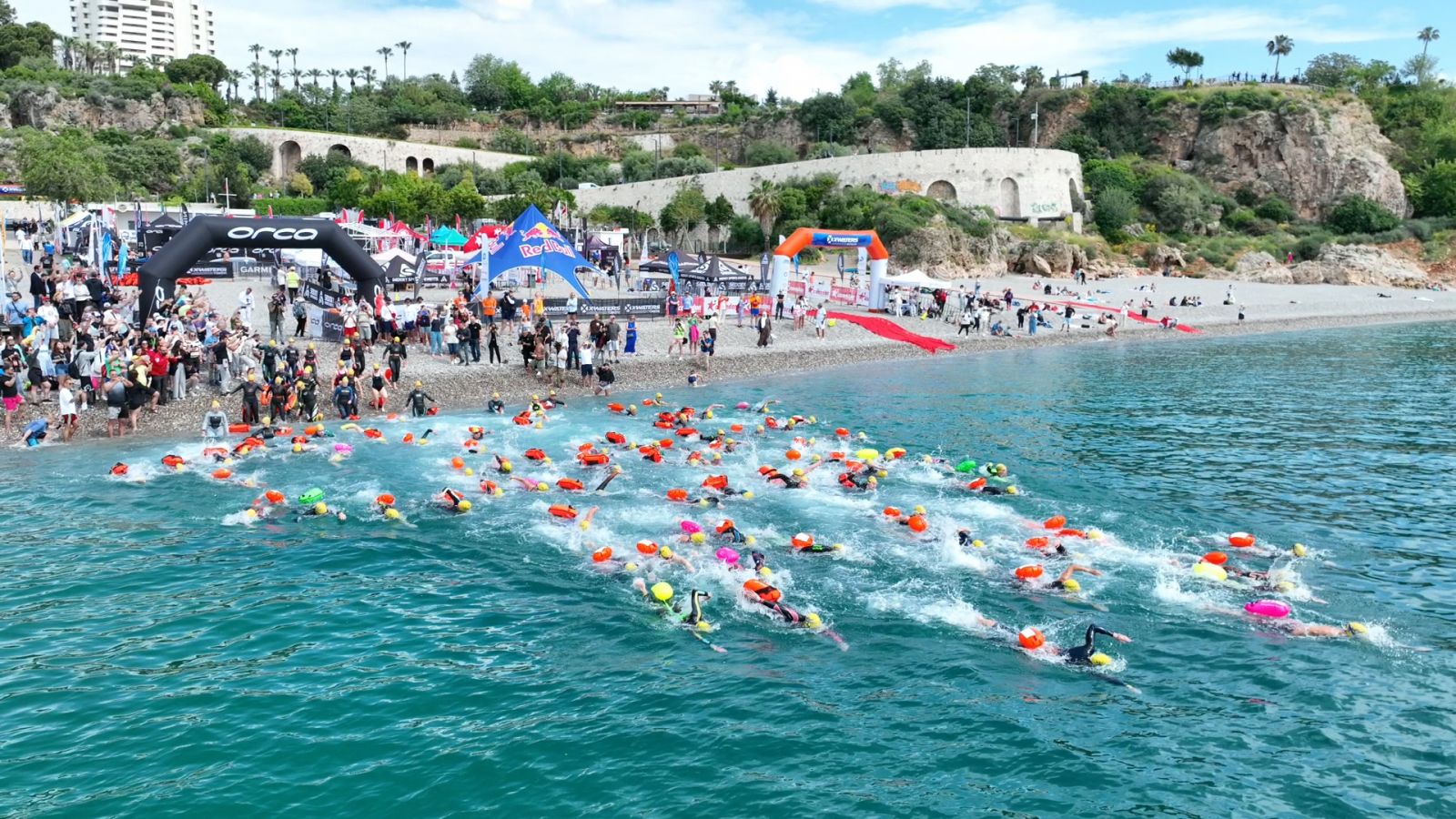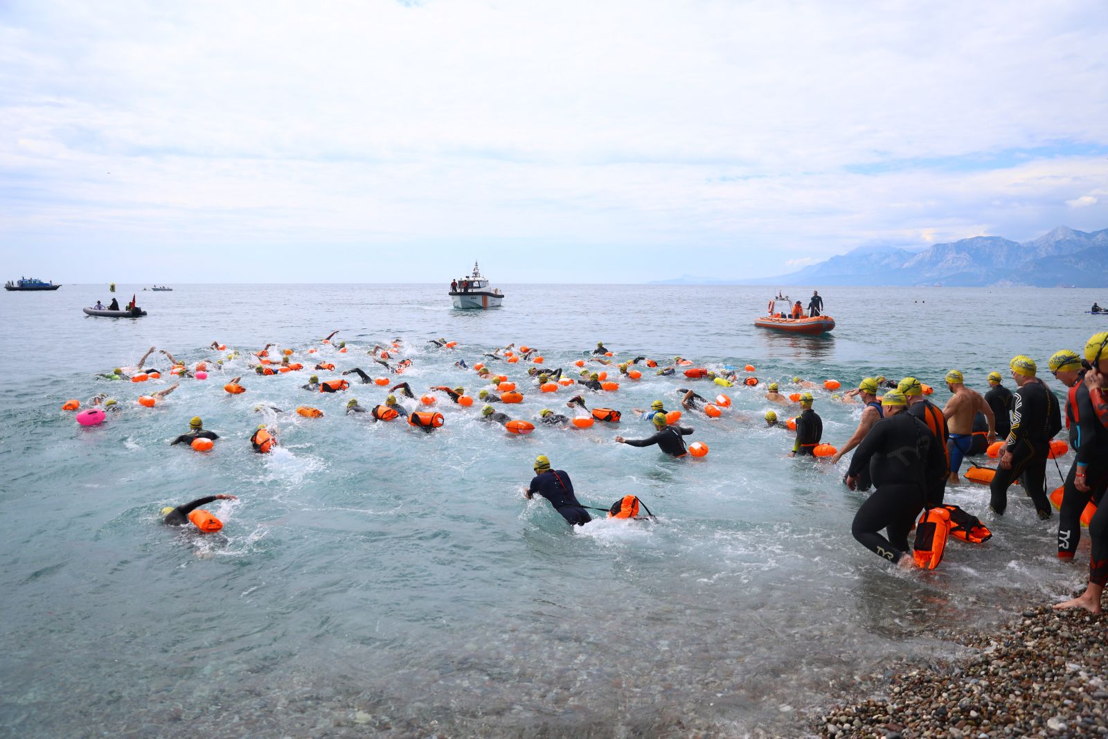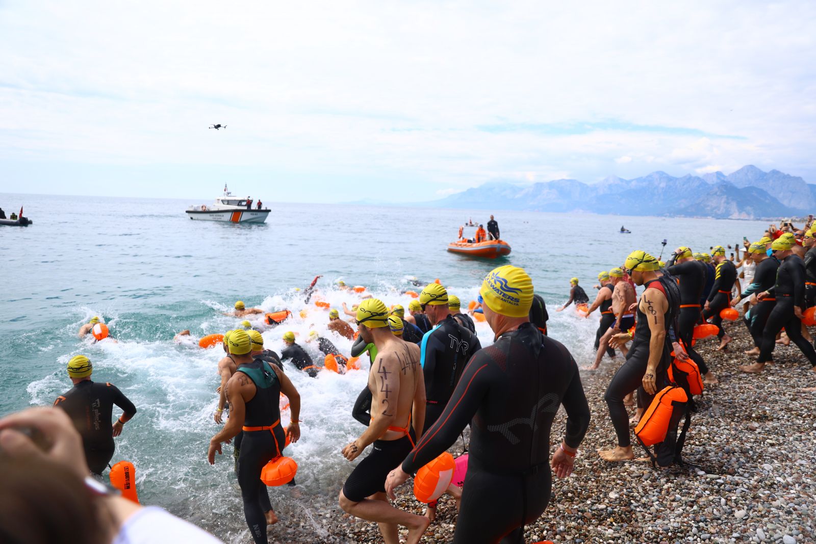 Kadın ve erkek kategorilerinde gerçekleşen yarışlarda, sporcular Akdeniz’in berrak sularında 5 kilometrelik parkuru tamamlamak için mücadele etti.