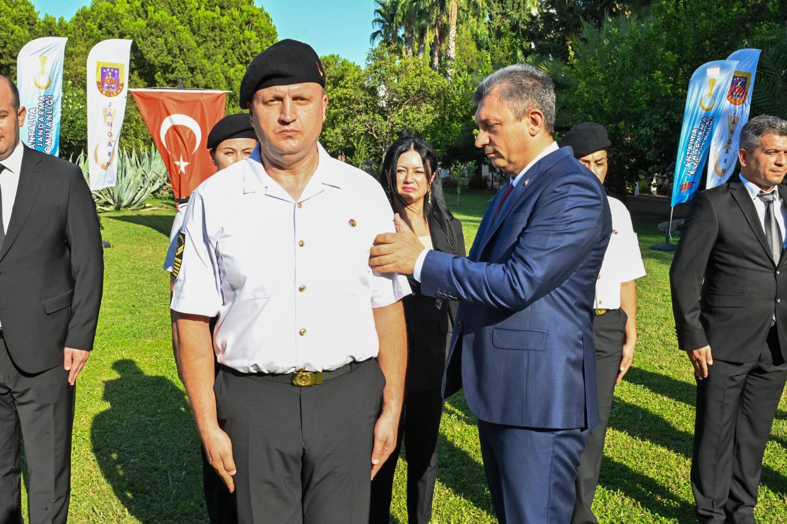 Antalya Valisi Hulusi Şahin, İl Jandarma Komutanlığında düzenlenen rütbe terfi törenine katıldı.