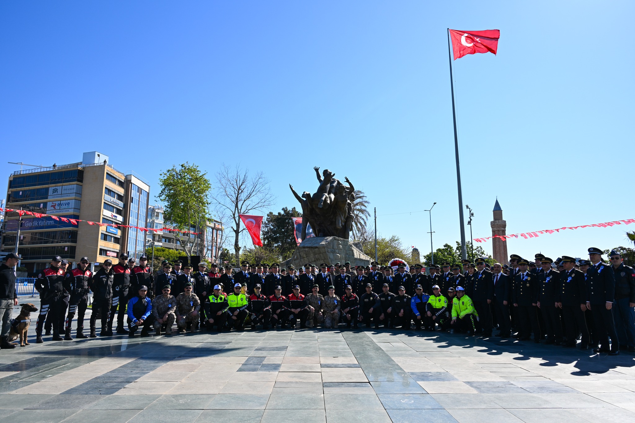Türk Polis Teşkilatı’nın 181. kuruluş yıl dönümü kapsamında Antalya’da resmi tören düzenlendi. Cumhuriyet Meydanı’ndaki Atatürk Anıtı’na çelenk sunularak anlamlı gün anıldı.