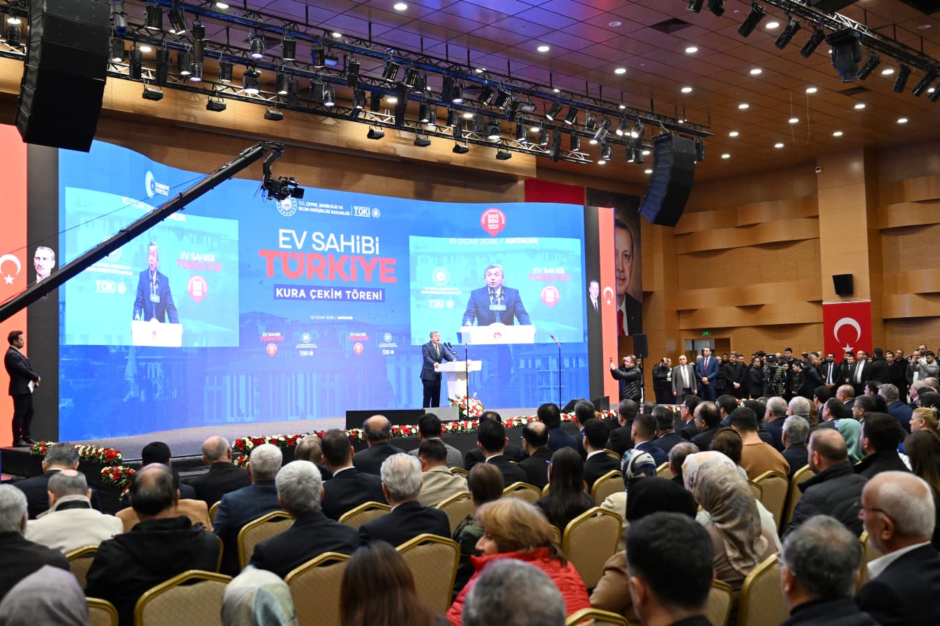 Çevre, Şehircilik ve İklim Değişikliği Bakanlığı koordinesinde, TOKİ tarafından yürütülen “Yüzyılın Konut Projesi” kapsamında, Antalya’da hayata geçirilecek 13 bin 213 sosyal konut için kura çekimi yapıldı. Mimar Sinan Kongre Merkezi’nde düzenlenen programa Bakan Murat Kurum, İçişleri Bakan Yardımcısı Münir Karaloğlu, Antalya Valisi Hulusi Şahin, milletvekilleri, kurum temsilcileri ve çok sayıda vatandaş katıldı.