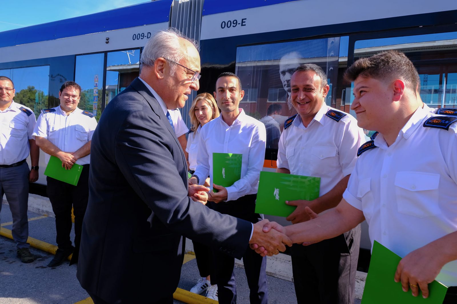 “Antalyalılar’a en iyi hizmeti sunmak ve hizmet kalitemizi dünya standartlarına yükseltmek için çalışmalarımızı tüm hızımızla sürdürüyoruz. 50 kilometrenin üzerinde raylı sistem ağımız mevcut ve yolcularımıza daha kaliteli hizmet sunabilmek için Avrupa Birliği standartlarındaki eğitimlerini ve sınavlarını başarıyla tamamlayan tüm çalışma arkadaşlarımı tebrik ediyorum” dedi.