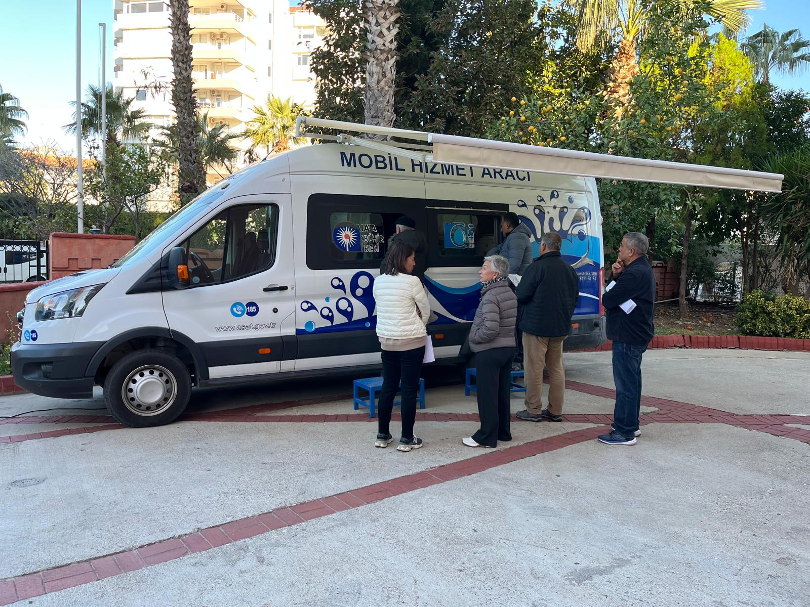 Antalya Büyükşehir Belediyesi ASAT Genel Müdürlüğü, Mobil Hizmet Aracı ile hizmeti vatandaşın ayağına götürüyor.