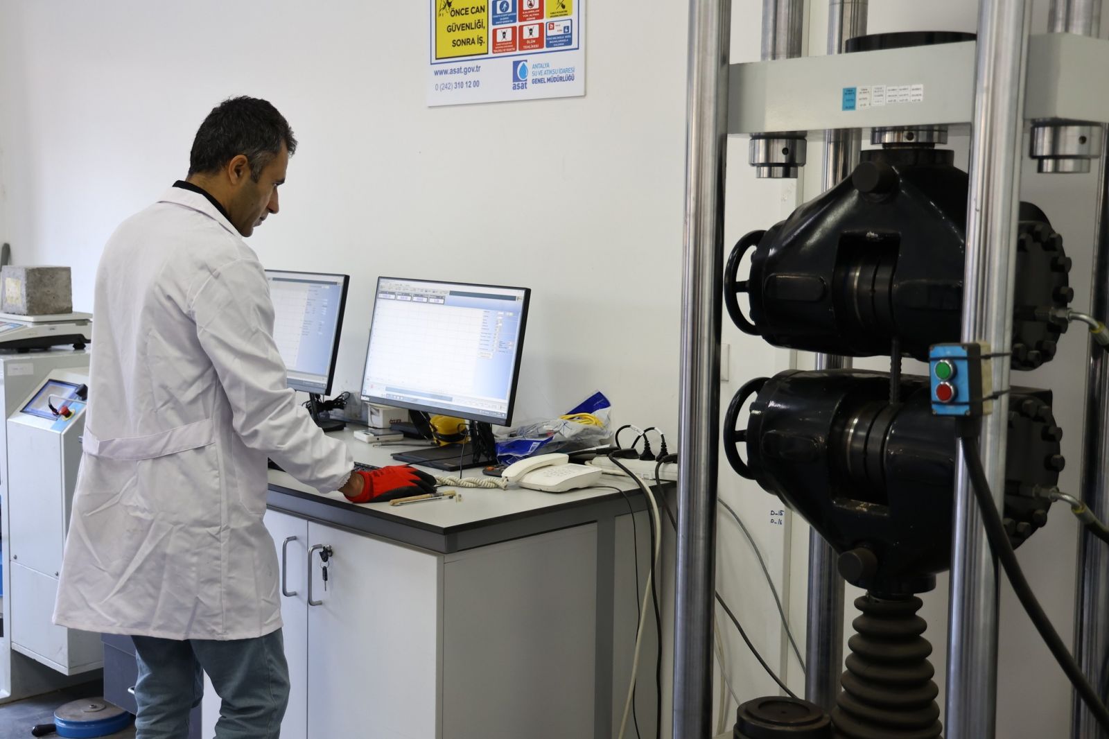 Antalya Büyükşehir Belediyesi ASAT Genel Müdürlüğü bünyesinde kurulan Yapı Malzemeleri Laboratuvarı’nda görev yapan inşaat teknikeri Volkan Esertaş "2019 yılında kurulan laboratuvarımız, Türk Standartları Enstitüsü (TSE) ve Türk Akreditasyon Kurumu (TÜRKAK) tarafından belgelendirilmiş, uluslararası standartlarda hizmet veren bir laboratuvardır. Laboratuvarımızda 5 ana bölümden 150 farklı deney gerçekleştiriyoruz.