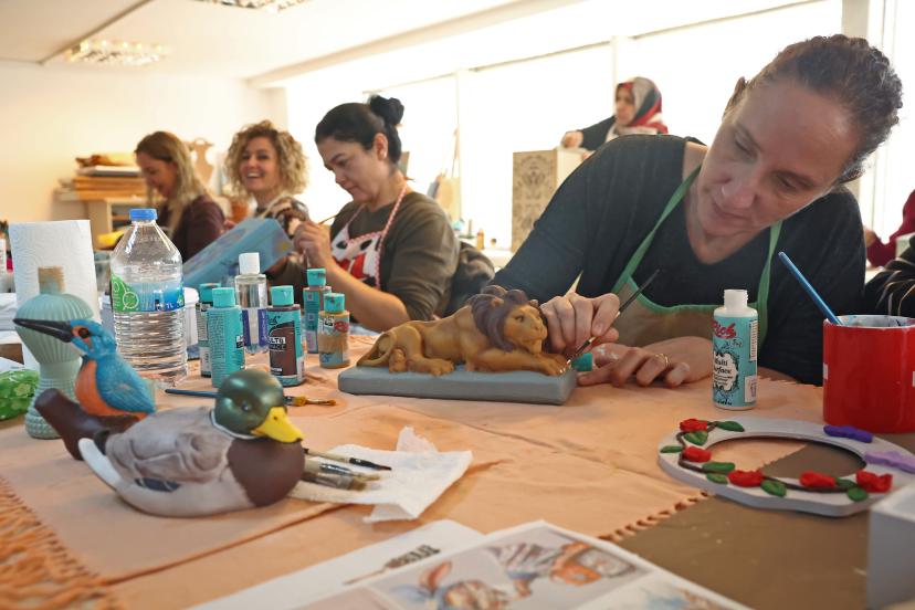 ATASEM’de açılan Seramik Biçimlendirme Kursu’nda kursiyerler, çamuru şekillendirip pişiriyor, boyuyor ve desen işliyor, ortaya birbirinden güzel eserler çıkıyor.