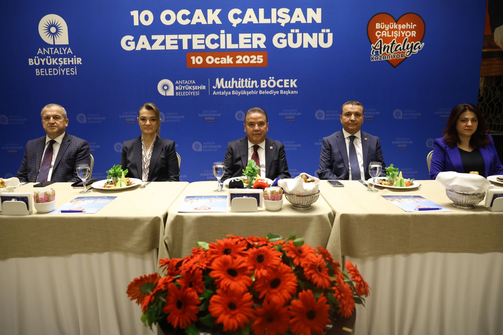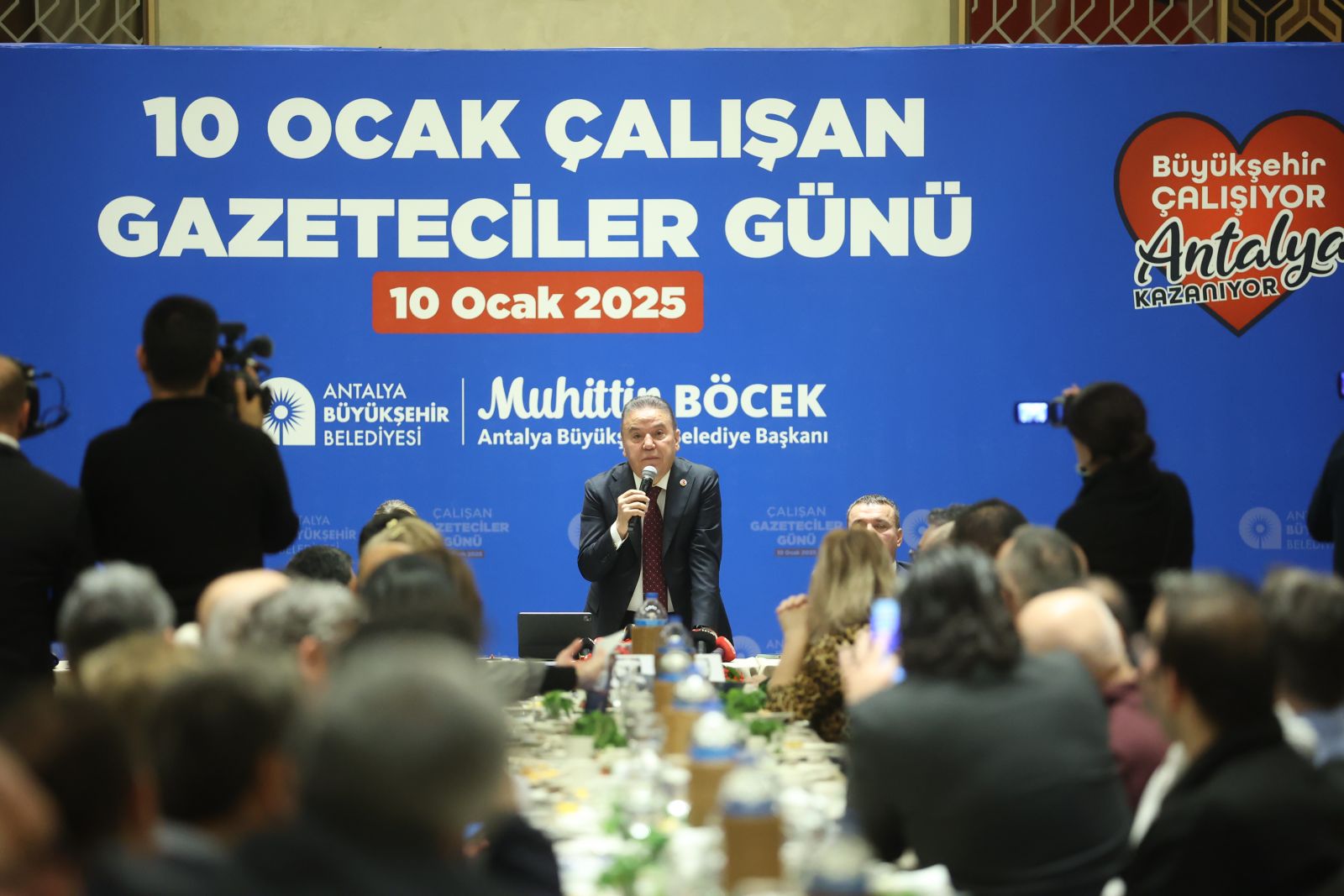 Antalya Büyükşehir Belediye Başkanı Muhittin Böcek, 10 Ocak Çalışan Gazeteciler Günü’nde basın mensuplarıyla bir araya geldi.
