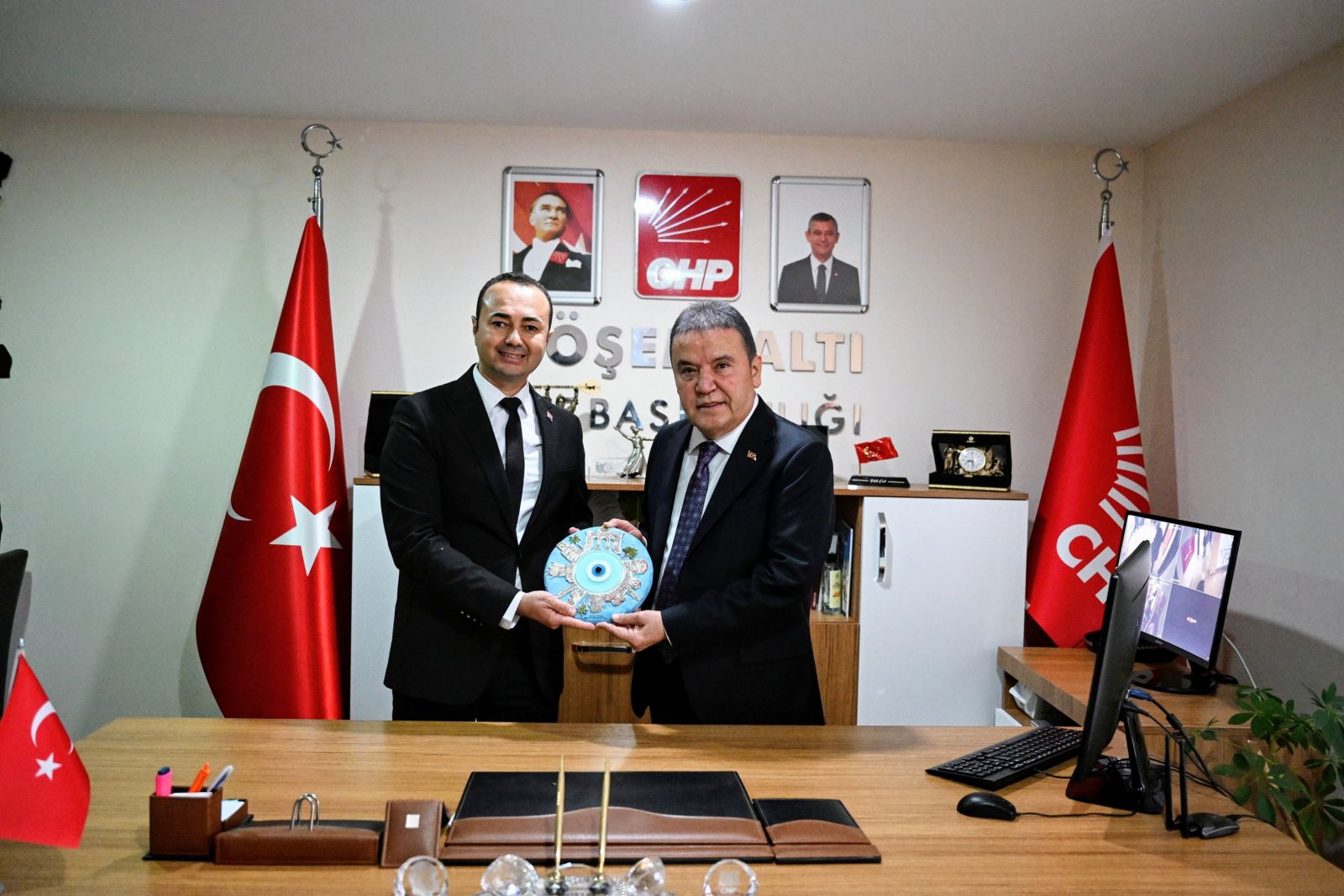 Döşemealtı ilçesini ziyaret eden ve çeşitli temaslarda bulunan Antalya Büyükşehir Belediye Başkanı Muhittin Böcek ilk olarak CHP Döşemealtı İlçe Başkanlığı’nı ziyaret etti. İlçe Başkanı Veli Çot, Gençlik Kolları Başkanı Kemal Çelik, Kadın Kolları Başkanı Selmay Atik ve partililer ile bir süre sohbet eden Başkan Böcek, 31 Mart seçimlerinde Antalya’da çok güzel başarılara imza atıldığını belirterek, parti emekçilerine teşekkür etti.