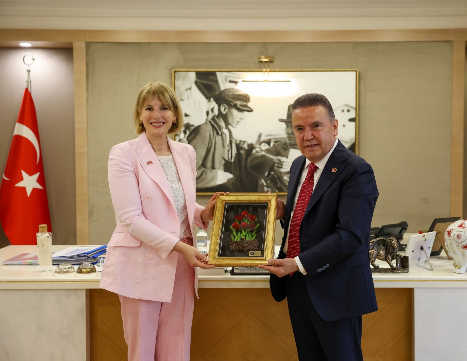 Birleşik Krallık Türkiye Büyükelçisi Jill Morris ve beraberindeki heyet, Antalya Büyükşehir Belediye Başkanı Muhittin Böcek’i ziyaret etti.