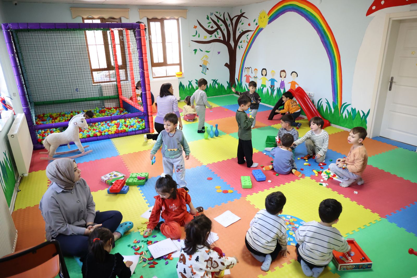 Büyükşehir Belediyesi’nin Akseki kreşinde 4 personel, yemekhane, oyun salonu, çocuk parkı, 2 sınıf ve uyku odası bulunuyor.