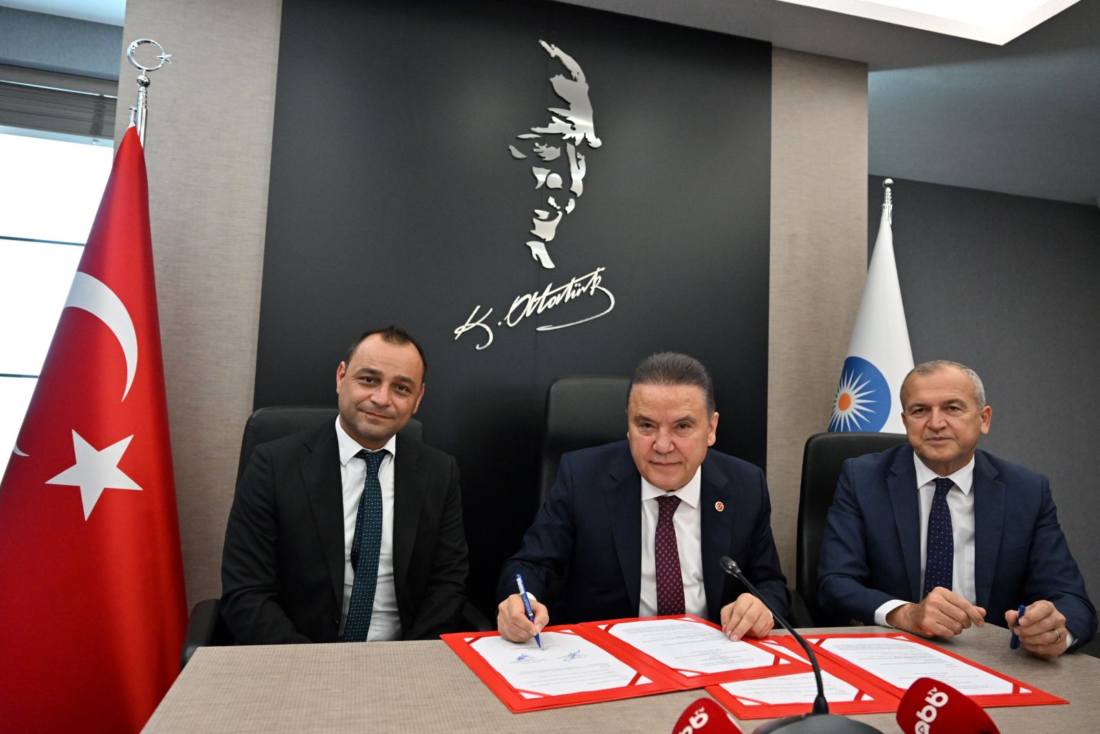 Antalya Büyükşehir Belediye Başkanı Muhittin Böcek, Çevre Mühendisleri Odası Antalya Şube Başkanı Hakkı Dikmen ile bağlantı kalite kontrol ruhsat belgesi öncesi, teknik rapor hazırlanmasına ilişkin işbirliği protokolü imzalandı.