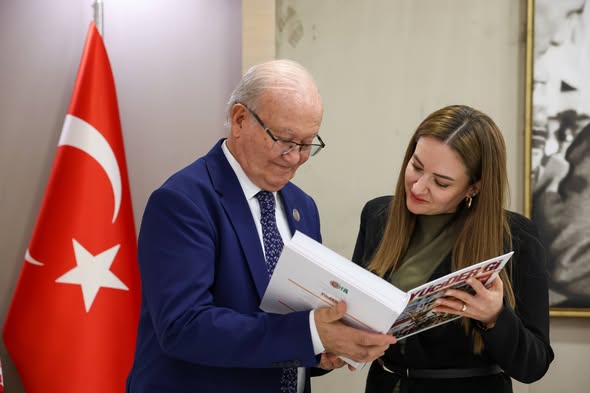 Ziyaretin sonunda, Riyad’da düzenlenen uluslararası yarışmada “Dünyada son 30 yılın en iyi dergisi” seçilen YÜciDer-Gİ, Prof. Dr. Yavuz Tekelioğlu tarafından Başkan Vekili Büşra Özdemir’e hediye edildi. Özdemir, ülkemize kazandırılan bu dünya birinciliği için Tekelioğlu’na teşekkür ederek, Antalya’nın gastronomideki gecikmiş başarısını hızla telafi etmek ve dünya ile yarışır hale gelmek adına, toplantıya katılan kurmaylarına AGP ile vakit kaybetmeden çalışmalara başlanması talimatını verdi.