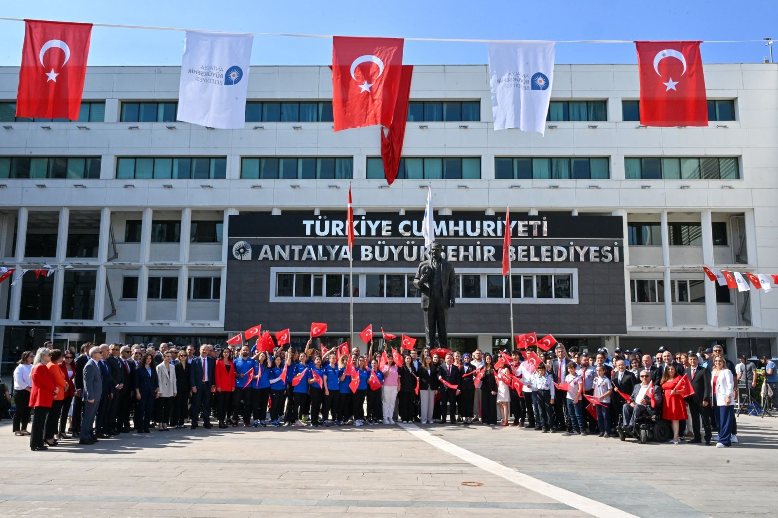 Büyükşehir Belediyesi Hizmet Binası önünde gerçekleşen törene, Başkan Muhittin Böcek, Genel Sekreter Cansel Tuncer, ASAT Genel Müdürü İbrahim Kurt, genel sekreter yardımcıları, daire başkanları, zabıta personeli, ASAT personeli, Gençlik Meclisi Üyeleri, Genç Antalya Gönüllüleri, Antalya Büyükşehir Belediyesi Spor Kulübü sporcuları ile Büyükşehir izcileri katıldı.