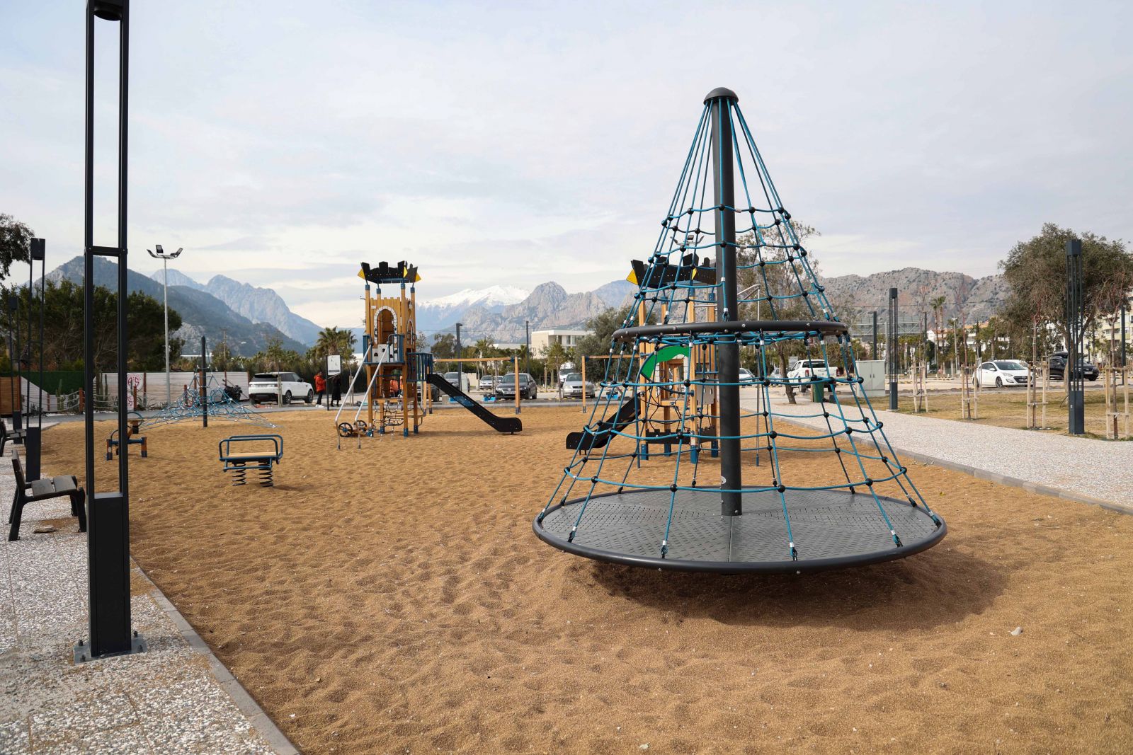 Antalya Büyükşehir Belediyesi, Karaalioğlu Parkı ve Konyaaltı Sahili’ndeki parklarda yer alan çocuk oyun alanlarında zeytin çekirdeğinden zemin kaplama uygulaması başlattı.