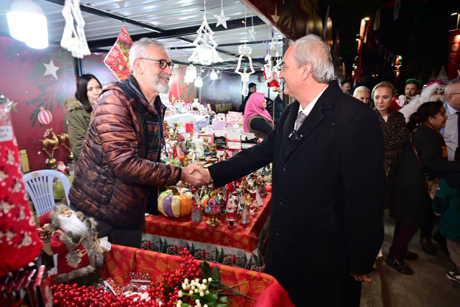 Başkan Kocagöz, yılbaşı süsleri ve hediyelik eşyaların yer aldığı pazar alanını gezdi, alışveriş yapan vatandaşlarla sohbet etti.