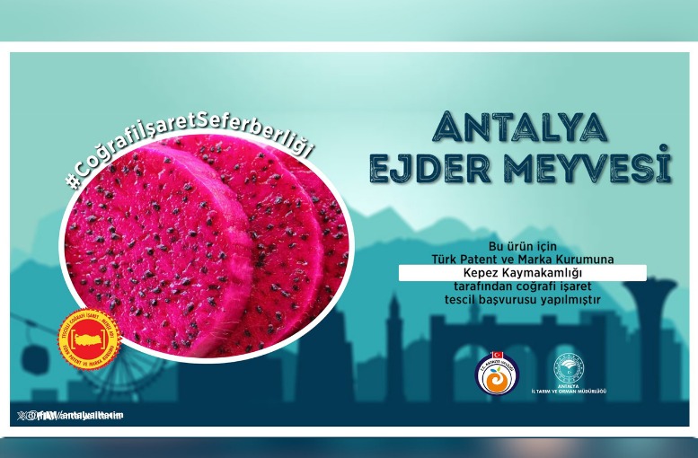 Antalya Valiliği öncülüğünde sürdürülen Coğrafi İşaret Seferberliği kapsamında, Antalya’ya özgü Ejder Meyvesi için Türk Patent ve Marka Kurumu’na coğrafi işaret tescil başvurusu gerçekleştirildi. Başvuru, Kepez Kaymakamlığı tarafından yapıldı.