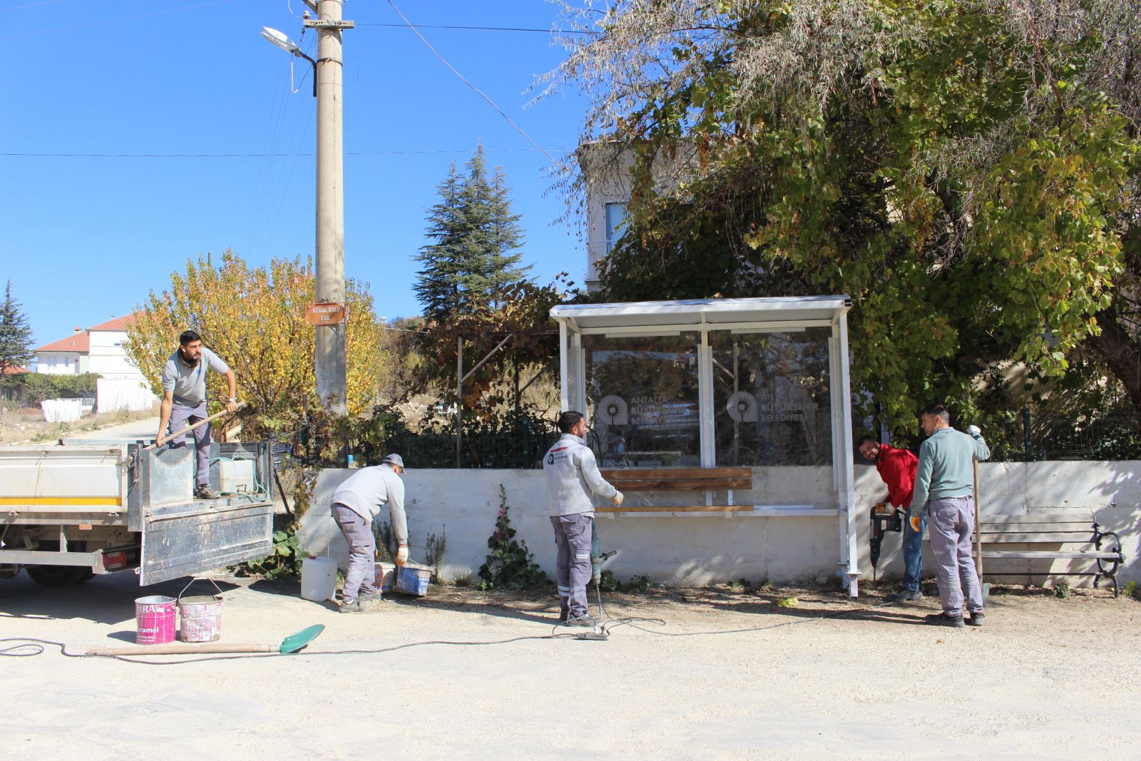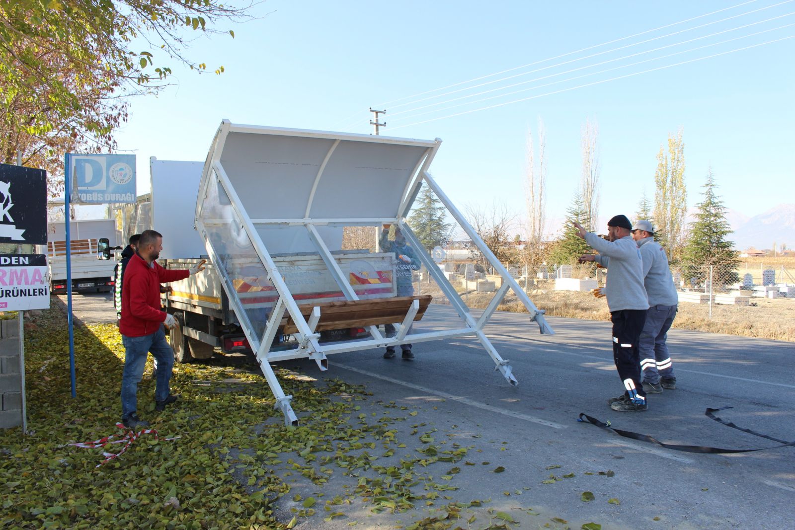 Antalya Büyükşehir Belediyesi, Elmalı’nın ve kırsal mahallelerinde gelen talepler ve ihtiyaçlara göre otobüs duraklarının montajını gerçekleştiriyor.