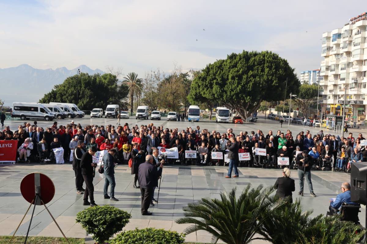 3 ARALIK DÜNYA ENGELLİLER GÜNÜ kapsamında Antalya’da Türkiye Sakatlar Derneği Antalya Şubesi ve Antalya Kent Konseyi Engelliler Meclisi öncülüğünde Cumhuriyet Meydanı’nda etkinlik düzenlendi. Etkinlikte engelli bireyler ve sivil toplum temsilcileri, toplumda karşılaşılan yapısal sorunlara dikkat çekmek amacıyla bir araya geldi.