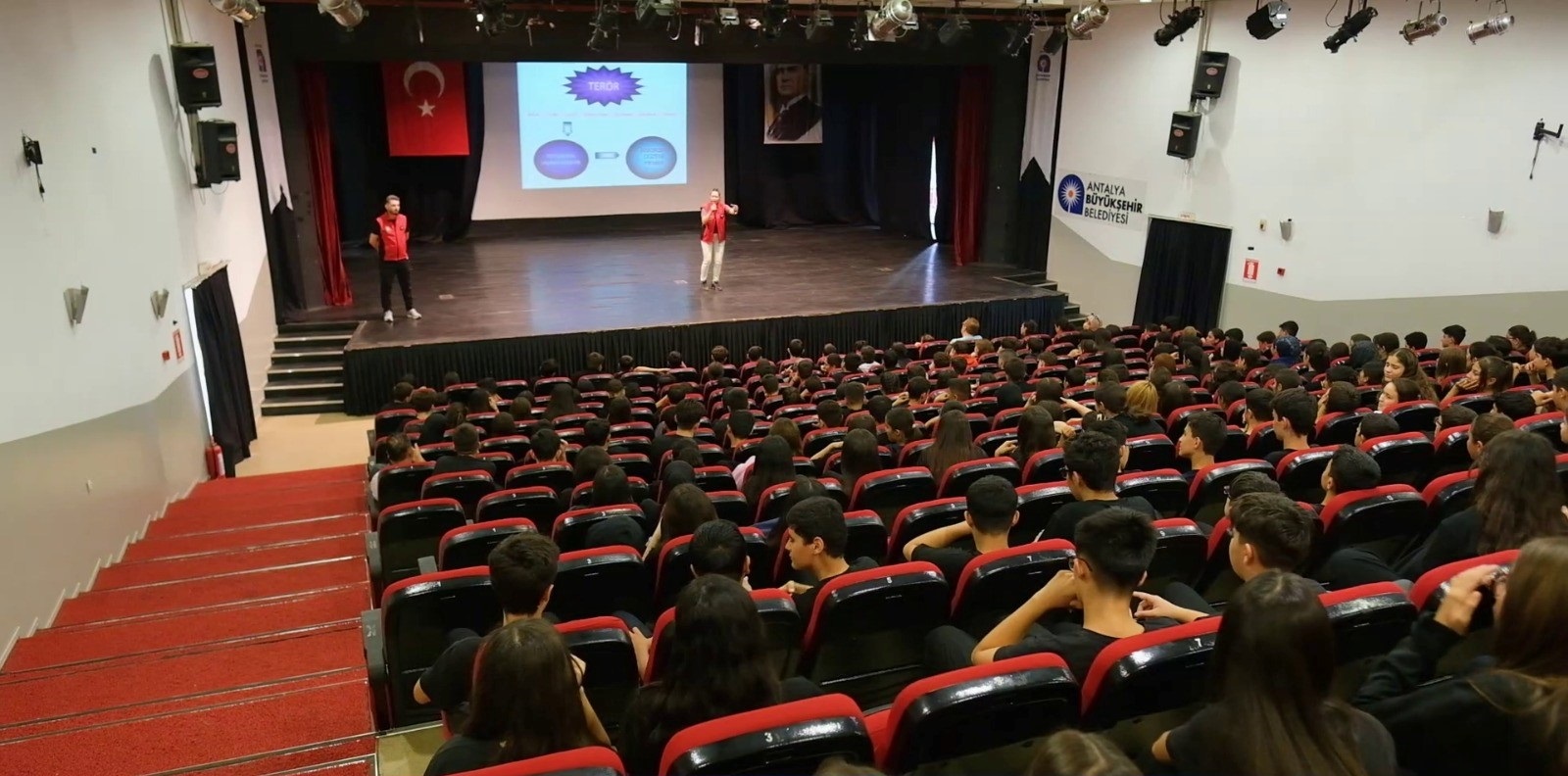 Antalya Emniyet Müdürlüğü, gençlerin milli değerleri benimsemelerini, birlik ve beraberlik duygularını pekiştirmelerini sağlamak amacıyla yürüttüğü “Gelecek Sizinle Gülecek” projesi kapsamında bilgilendirme çalışmalarına devam ediyor.