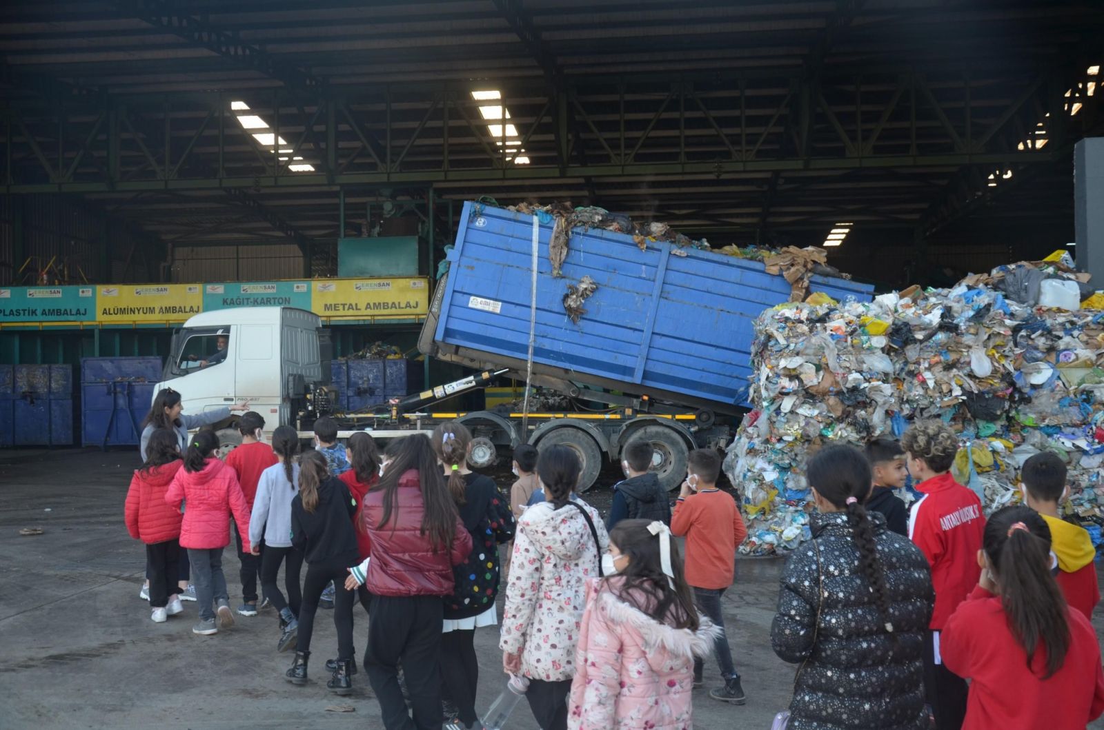 Kepez Belediyesi, Yüzbaşı Mustafa Ertuğrul Ortaokulu öğrencilerini sürdürülebilir bir yaşam ve temiz bir çevre bilinci oluşturmak için Erensan Geri Dönüşüm Tesisi’ni gezdirdi.