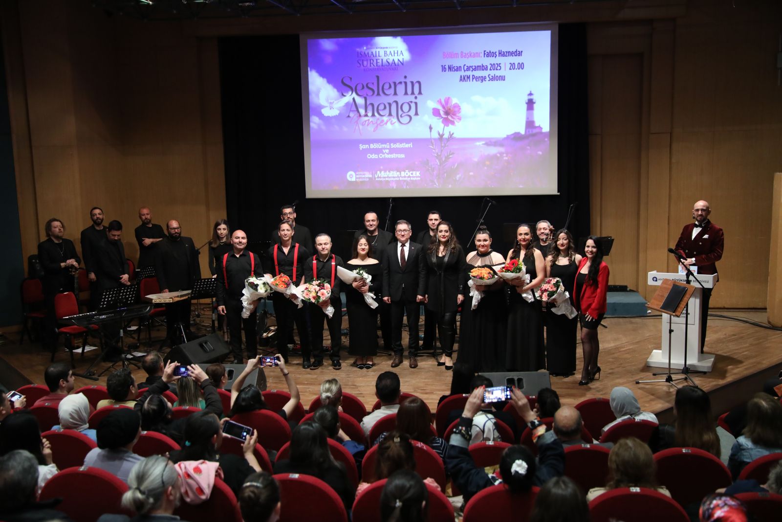 Atatürk Kültür Merkezi Perge Salonu’nda gerçekleşen ‘Seslerin Ahengi’ konseri yoğun ilgi gördü. İsmail Baha Sürelsan Konservatuvarı Şan Bölümü Başkanı Fatma Haznedar öncülüğünde hazırlanan konserde, Orkestra Şefi Mehmet Taşkın yönetiminde sahneye çıkan solistler birbirinden değerli eserleri seslendirdi.