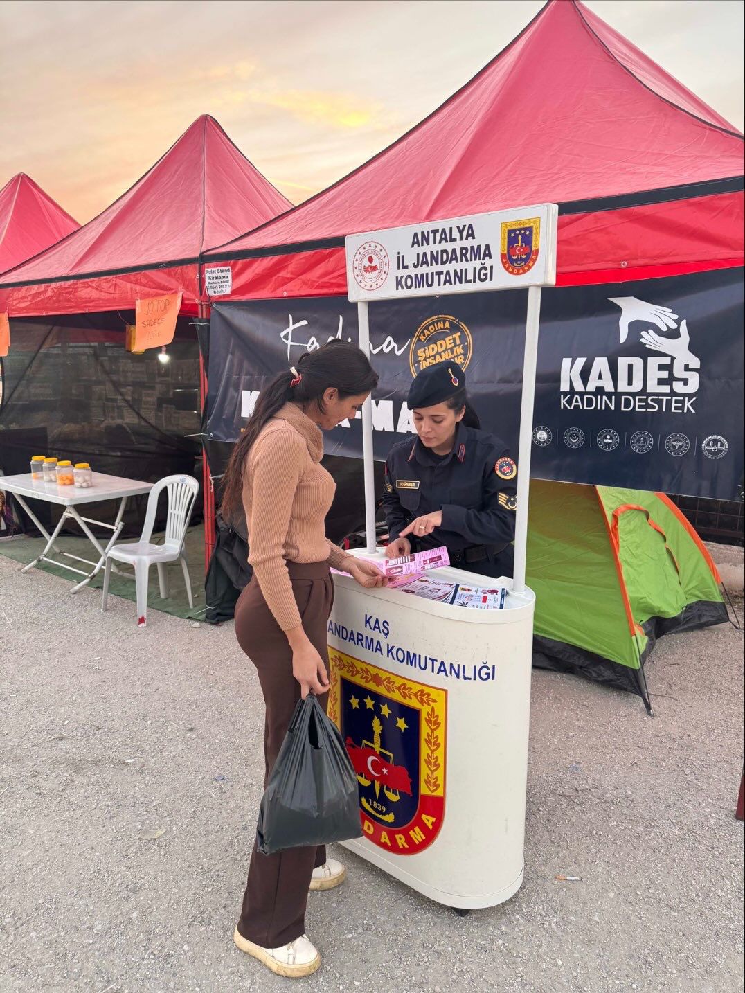 25 Kasım Kadına Yönelik Şiddete Karşı Uluslararası Mücadele Günü kapsamında Antalya İl Jandarma Komutanlığı, Kaş, Manavgat, Finike, Alanya ve Kumluca’da bilgilendirme faaliyetleri gerçekleştirdi. Vatandaşlara KADES uygulaması, 6284 Sayılı Kanun ve kadına yönelik şiddetle mücadele yöntemleri hakkında bilgi verildi.