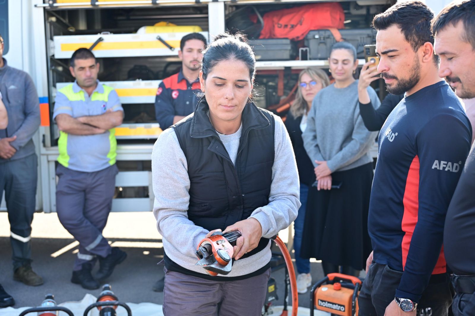 Teorik eğitimler ve ekipman tanıtımı sonrasında AFAD Döşemealtı sahasında uygulamalı eğitimler gerçekleştirildi. Uygulamalı eğitimlerde, afetlerde saha çalışması ve müdahale süreçleri tatbikatla gerçekleştirildi. Gerçeğini aratmayan bir senaryo oluşturularak, betonlar kırıldı ve parçalanan betonların arasına girilerek kurtarma ekipmanlarının kullanımı uygulamalı olarak gösterildi.
