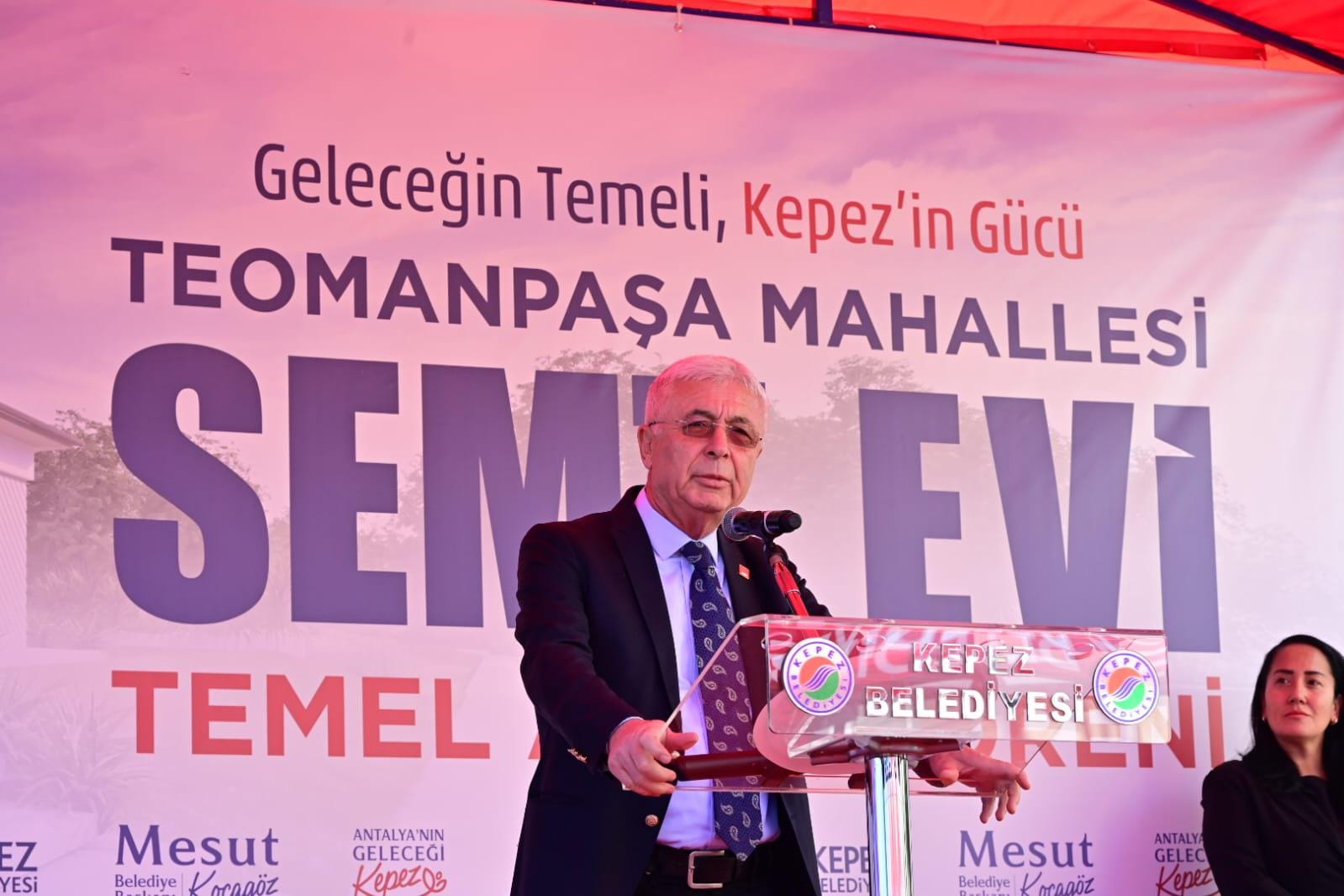 Kepez Belediyesi, sosyal belediyecilik hizmetleri kapsamında mahallelere semt evleri kazandırıyor. Kepez Belediye Başkanı Mesut Kocagöz’ün, 38 projesi arasında yer alan Teomanpaşa Semt Evi projesinin temeli törenle atıldı. Temel atma törenine Kepez Belediye Başkanı Mesut Kocagöz, CHP Antalya İl Başkanı Nail Kamacı, CHP Kepez İlçe Başkanı Gökhan Ölmez, Kepez Muhtarlar Dernek Başkanı Süleyman Kabaağaç, hayırsever Cemil Zamur, meclis üyeleri, mahalle muhtarları ve vatandaşlar katıldı.