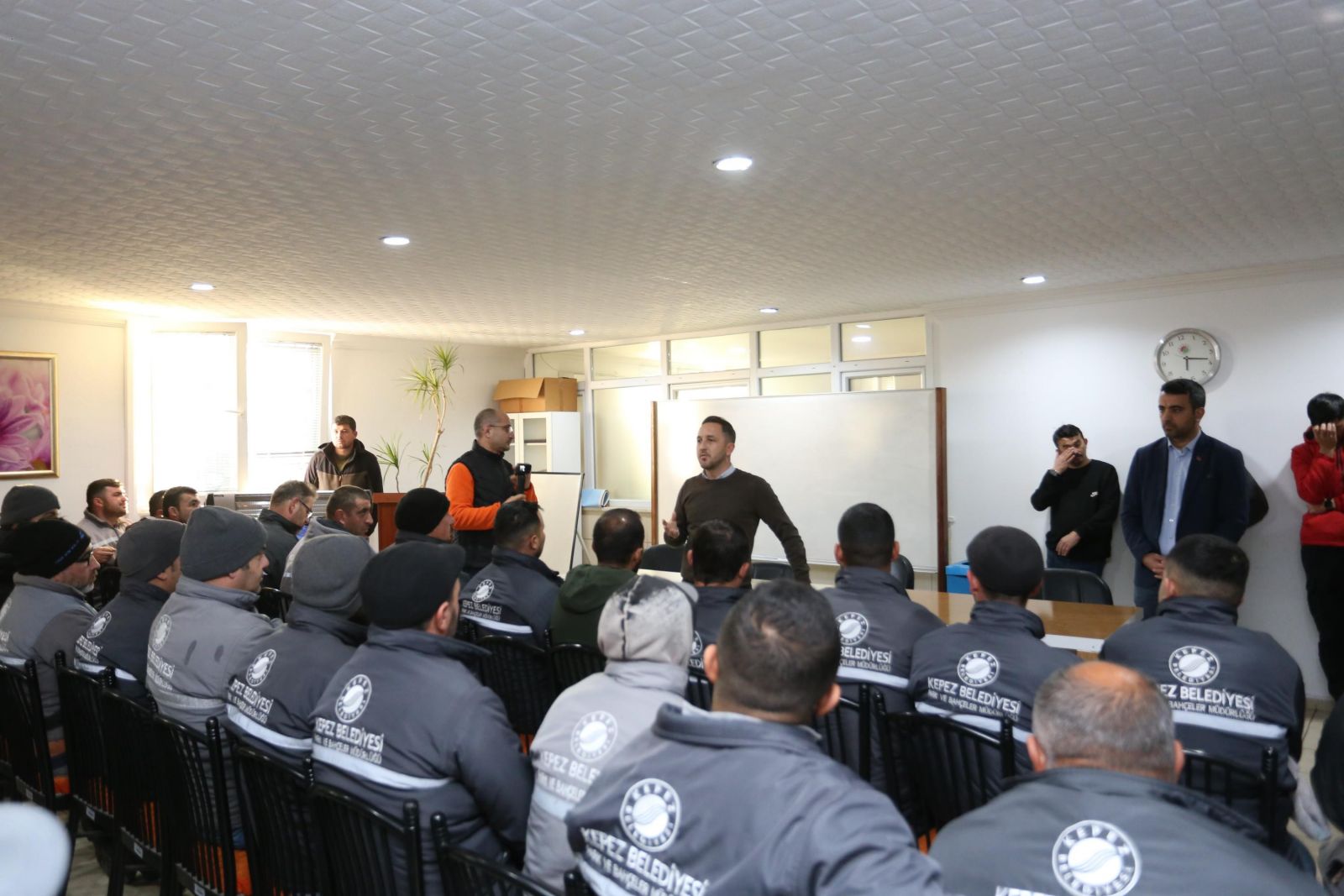 Eğitimlerde, iş kazalarından korunma yöntemleri, kişisel koruyucu donanım kullanımının önemi, soğuk havalarda dikkat edilmesi gereken kurallar, güvenli çalışma koşulları gibi konular ele alınıyor. Çalışanlarda güvenlik kültürünü geliştirmek ve iş sahasında kurallara uyulmasını sağlamak amacıyla verilen eğitimlerde, eldivensiz, gözlüksüz veya diğer koruyucu ekipmanlar olmadan işe başlanmaması gerektiği vurgulanıyor. Ayrıca iş öncesinde çalışma alanının güvenliğinin sağlanması gerektiği de personele hatırlatılıyor. Kepez Belediyesi’nde iş güvenliği eğitimleri, İş Sağlığı ve Güvenliği Sorumlusu Yavuz Ekiz ve İş Güvenliği Uzmanı Yusuf Nizamoğlu tarafından veriliyor.