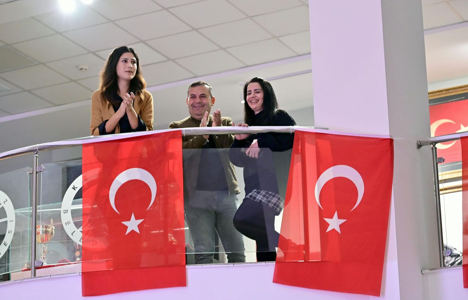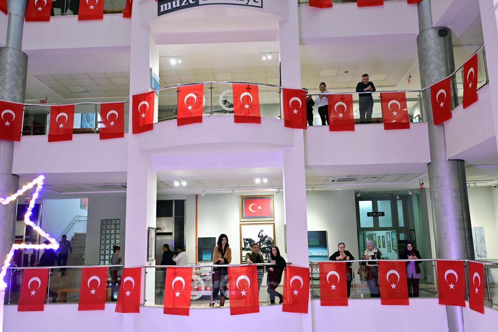 Atatürk posteri ve Türk bayrağının asılı olduğu koridorların balkonlarından konseri izleyen personel, haftanın ilk iş gününe Pazartesi sendromunu yaşamadan yüksek moralle başlamaları için bu etkinliği düzenlemesinden dolayı Başkan Mesut Kocagöz’e teşekkür ettiler.