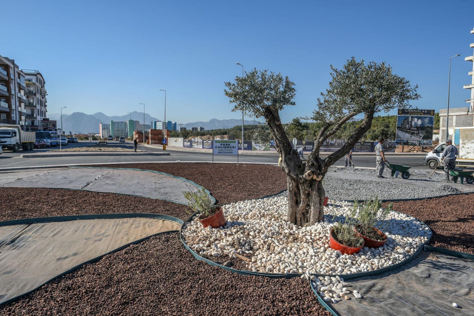 Park ve Bahçeler Müdürlüğü, yaklaşık 1200 metrekare büyüklüğündeki kavşak alanını peyzaj uygulamasıyla güzelleştiriyor. Kavşağın peyzaj uygulamasında ise ekolojik uygulama seçildi. Kavşak alanı, çevreyi koruyan ve su tüketimini minimuma indiren kurakçıl peyzaj uygulamasıyla düzenleniyor. Merkezinde yetişkin zeytin ağacının bulunduğu peyzaj düzenlemesinde; fazla su tüketen çim yerine kırmızı ve gri renkli cüruf taşı ile mineral filler ve doğal kum kullanılıyor.