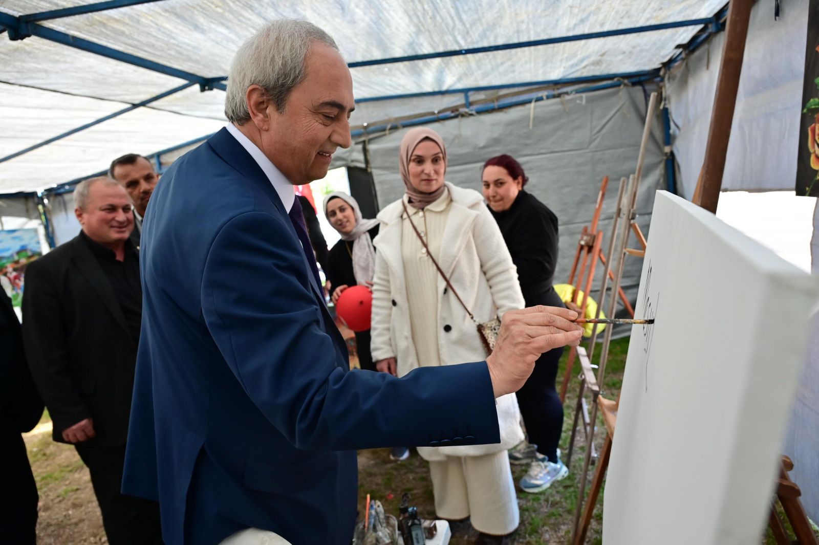 Başkan Kocagöz, projenin fikir babası olan Kuzeyyaka Mahalle Muhtarı Mustafa Minnetoğlu ve mahalle sakini ressam Ahmet Koçak’ı tebrik ederek, “Sizi gönülden kutluyorum. Çocuklarımız ve gençlerimiz için düşünülen her fikir bizim için çok kıymetlidir. Sanatla büyüyen nesiller, geleceğe daha güçlü ve bilinçli adımlarla yürür” diye konuştu. Başkan Kocagöz, sanat çadırında resim yapan çocuk ve gençlerle sohbet etti. Tuval üzerine yağlı boya ile ismini yazdı.