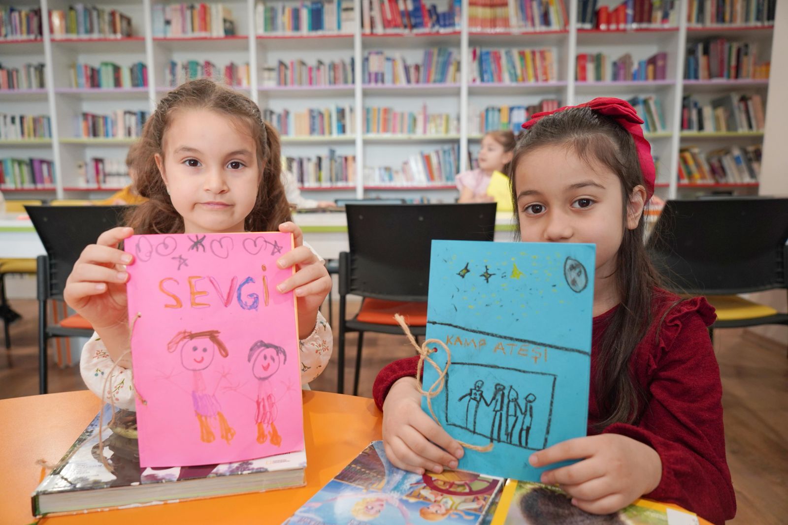 Kitapları keşfe çıkan minikler, kendi hazırladıkları el yapımı kitapları da kütüphaneye armağan etmeyi ihmal etmedi. Kitapları kütüphane yetkililerine teslim eden öğrenciler, daha sonra hem kütüphane hakkında bilgi aldı hem de beğendikleri kitapları okudu.