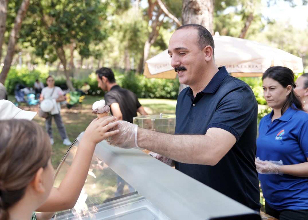 Karne gününün yaz mevsimi sıcaklarına denk gelmesi sebebiyle dondurma ikramı planladıklarını ifade eden Konyaaltı Belediye Başkanı Cem Kotan, “Gayet güzel bir etkinlik oluyor. Çocuklar sıraya girdiler ve dondurmalarını alıyorlar. Miniklerimize afiyet olsun. Kendileri için ilçemizde birçok etkinlik yapıyoruz. Bu etkinlik de bunlardan bir tanesi” dedi. HayatPark’ın Konyaaltı ve Antalya için büyük bir avantaj olduğunu vurgulayan Kotan, “Parkımızda çocuklar doyasıya eğleniyor. Bundan biz de, çocuklarımız da çok memnunuz. Dondurma ikramını da özellikle böyle güzel bir ortamda yapmak istedik” şeklinde konuştu.