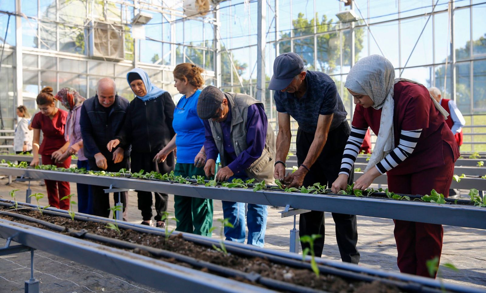 Antalya Büyükşehir Belediyesi Alzheimer Hasta ve Hasta Yakınları Buluşma Merkezi’ndeki hastalar, rehabilitasyon sürecinin bir parçası olarak serada fide dikimi gerçekleştirdi.