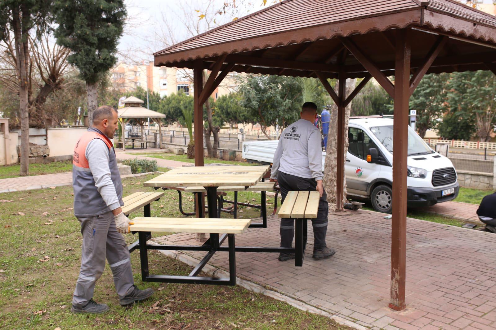 Kepez Belediyesi, ilçe parklarını bakım ve yenileme çalışmalarıyla daha modern ve kullanışlı hale getiriyor. İlçenin 68 mahallesinde başlatılan bakım yenileme çalışmaları bu hafta Erenköy Mahallesi 4788 sokakta bulunan Şehit Çavuş Yusuf Yitmez Parkı’nda gerçekleştirildi. Yıpranan ve zarar gören banklar onarıldı. Kullanım ömrünü tamamlayan dörtlü piknik masaları sökülerek, yerlerine yenileri konuldu. Hava koşullarından dolayı lokal bozulmaların olduğu kamelyalar tadilattan geçirildi. Çocukların park alanındaki oyun guruplarını güvenli bir şekilde kullanabilmesi için her biri tek tek onarılarak boyandı. Onarılamayacak durumdaki oyun gurupları ise yenileriyle değiştirildi. Çimler biçilerek, ağaçların uzayan dalları kesildi. Bozulan çim alanlarına yeniden tohum atıldı. Açık hava spor aletleri, spor sahalarındaki tel çitler, potalar, parkın yıpranan tabelası da bakım ve onarımdan geçti. Park ve Bahçeler Müdürlüğü ekiplerinin, tadilat ve yenileme çalışmasıyla Kepez’in Şehit Çavuş Yusuf Yitmez Parkı, adeta ilk günkü haline döndü.