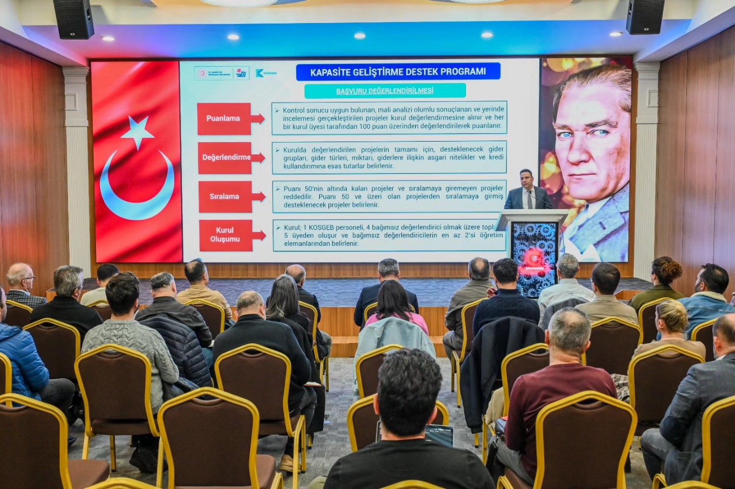 Antalya Organize Sanayi Bölgesi ile KOSGEB Antalya İl Müdürlüğü iş birliğinde düzenlenen “Dijital Dönüşüm ve Kapasite Geliştirme Destek Programları” bilgilendirme semineri, Antalya OSB Atatürk Konferans Salonu’nda gerçekleştirildi.