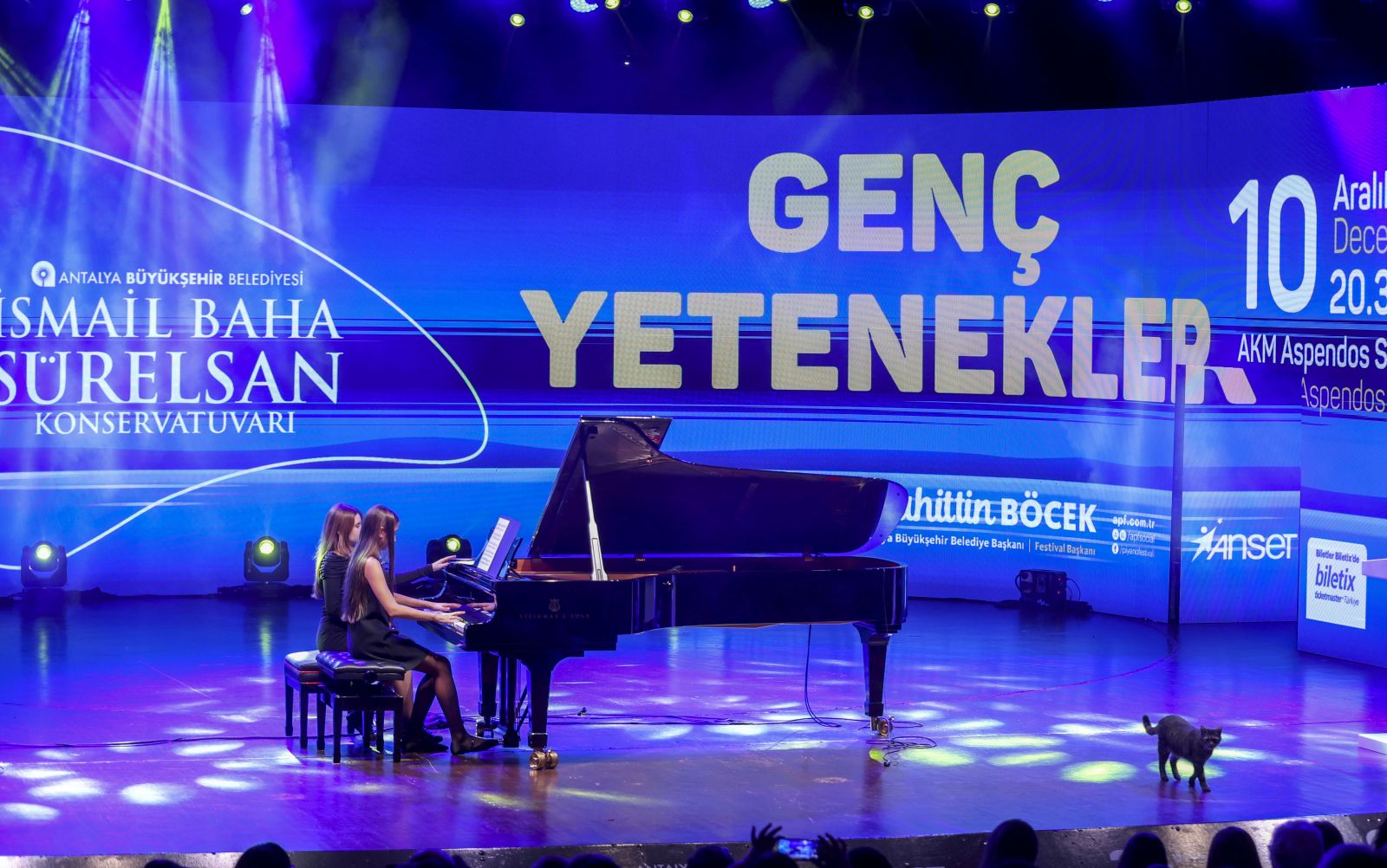 Antalya Büyükşehir Belediyesi’nin 6-20 Aralık tarihleri arasında 24’ncüsünü gerçekleştirdiği Uluslararası Piyano Festivali dün akşam genç yeteneklere ev sahipliği yaptı. Piyano Festivali kapsamında AKM Aspendos Salonu’nda ‘Genç Yetenekler’ konseri düzenlendi. Antalya Büyükşehir Belediyesi Kültür ve Sosyal İşler Dairesi Başkanlığı’na bağlı İsmail Baha Sürelsan Konservatuvarı Piyano Bölümü Öğrencilerinin sahne aldığı genç piyanistler izleyenlere müzik şöleni yaşattı.