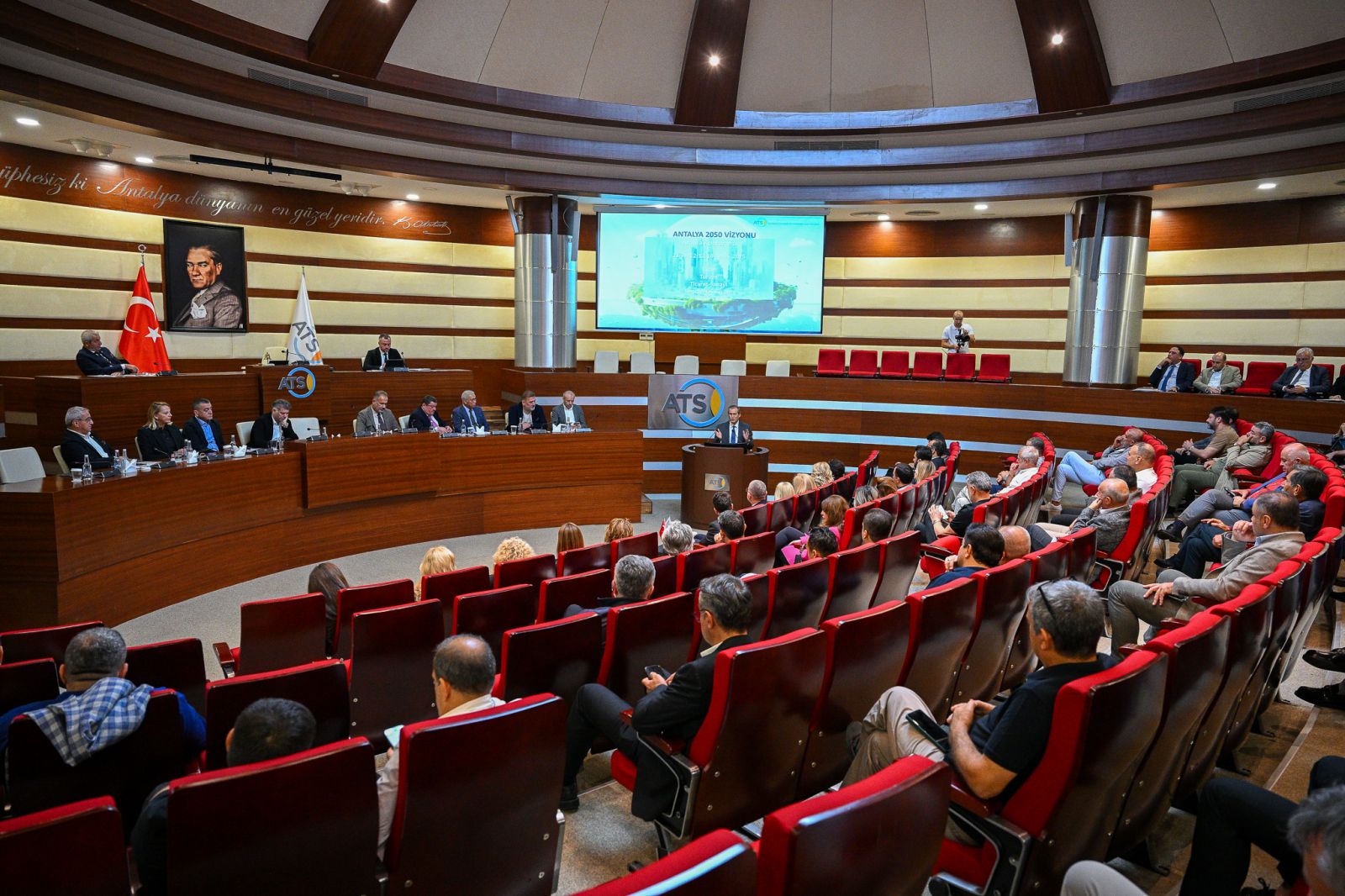 Antalya Ticaret ve Sanayi Odası’nın (ATSO) Ekim Ayı Olağan Meclis Toplantısı, Akdeniz Üniversitesi Rektörü Prof. Dr. Özlenen Özkan’ın katılımıyla ATSO Meclis Salonu’nda gerçekleştirildi.