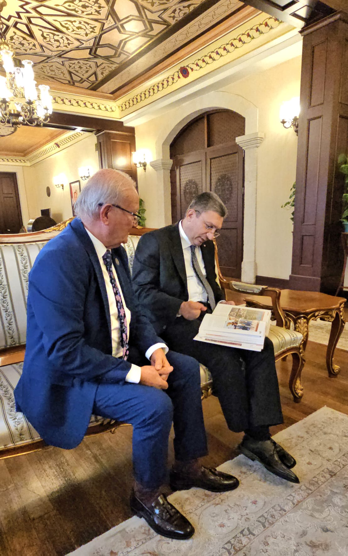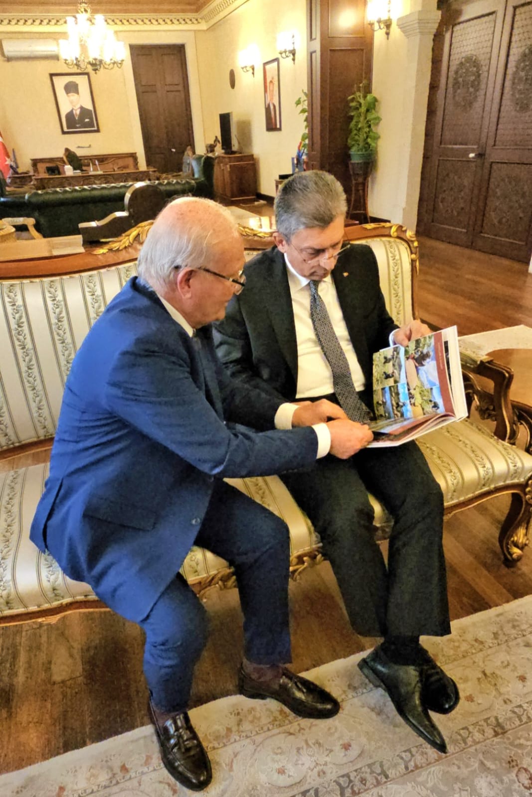 Bir saat 15 dakika süren makamdaki özel görüşmeye, YÜciTA ve Antalya Gastronomi Platformu Başkanı Prof. Dr. Yavuz Tekelioğlu'na, AGP Platformu üyeleri Prof. Dr. Mehmet Zambak ile Cevat Alp eşlik etti.