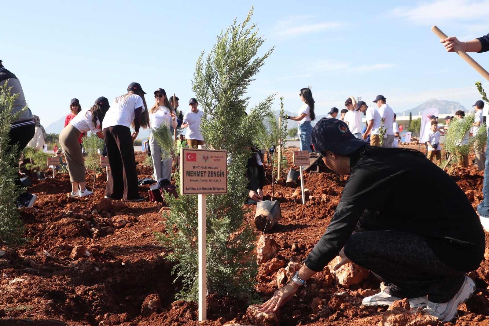 Antalya, 11 Kasım Milli Ağaçlandırma Günü’nde anlamlı bir etkinliğe ev sahipliği yaptı. Tarım ve Orman Bakanlığı Orman Genel Müdürlüğü ile Emniyet Genel Müdürlüğü Terörle Mücadele Daire Başkanlığı arasında imzalanan protokol kapsamında yürütülen “Şehitlerimiz İçin Her Bir Fidan, Geleceğimiz İçin Bin Nefes” Projesi çerçevesinde Antalya Emniyet Müdürlüğü tarafından fidan dikim etkinliği gerçekleştirildi.