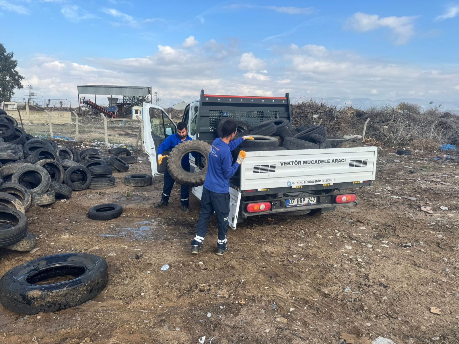 Sinekle mücadele çalışmalarına yaz-kış aralıksız devam eden Antalya Büyükşehir Belediyesi, sinekler için önemli bir üreme kaynağı olan eski araç lastiklerini toplayarak, geri dönüşüme gönderiyor.
