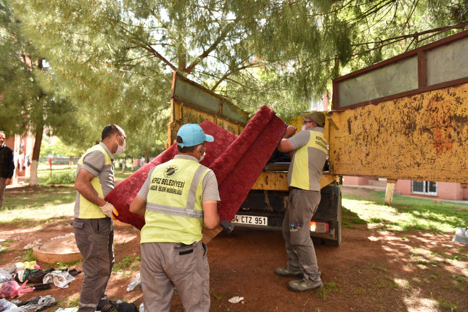 Bunun üzerine Kepez Kaymakamlığı bilgilendirildi ve Hıfzıssıhha Kurulu’nun kararıyla Kepez Belediyesi Sağlık İşleri Müdürlüğü’ne bağlı temizlik ekipleri tarafından kapsamlı bir temizlik süreci başlatıldı. Belediye ekipleri ilk olarak evdeki çürümüş, küflenmiş ve süresi geçmiş gıda maddelerini temizledi. Ardından, kullanılmaz durumda olan tüm eski eşyalar tek tek evden çıkarılarak, kamyona yüklendi.