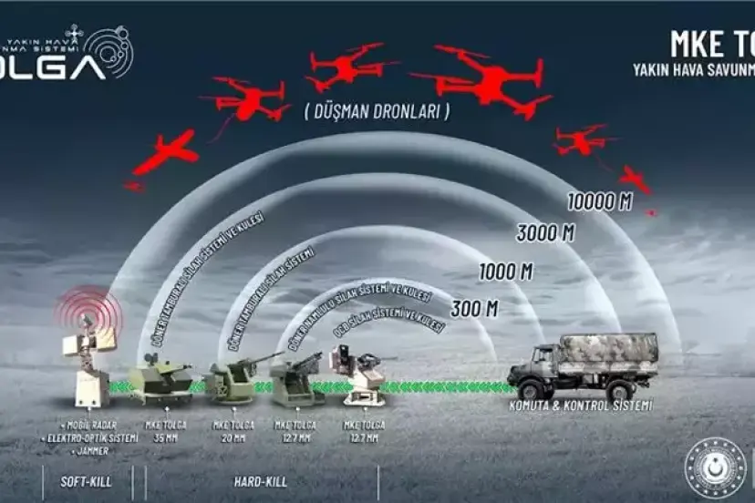MKE tarafından geliştirilen Tolga Yakın Hava Savunma Sistemi, Konya Karapınar’da yapılan testlerde hem soft‑kill hem hard‑kill senaryolarında 3 kilometre mesafedeki dron tehditlerini başarıyla imha etti. Türkiye’nin Çelik Kubbe hava savunmasının düşük irtifa katmanı bu sistemle güç kazanırken, Tolga’nın seri üretim için hazır olduğu açıklandı.