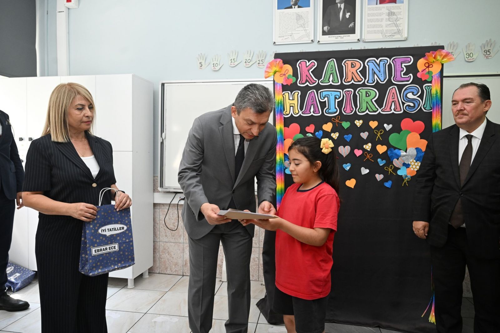 Fatmagül Özpınar İlkokulu’nda düzenlenen 2024-2025 Eğitim Öğretim Yılı İkinci Döneminin Karne Dağıtım Törenine katılan Antalya Valisi Hulusi Şahin, öğrencilere karnelerini verdi.