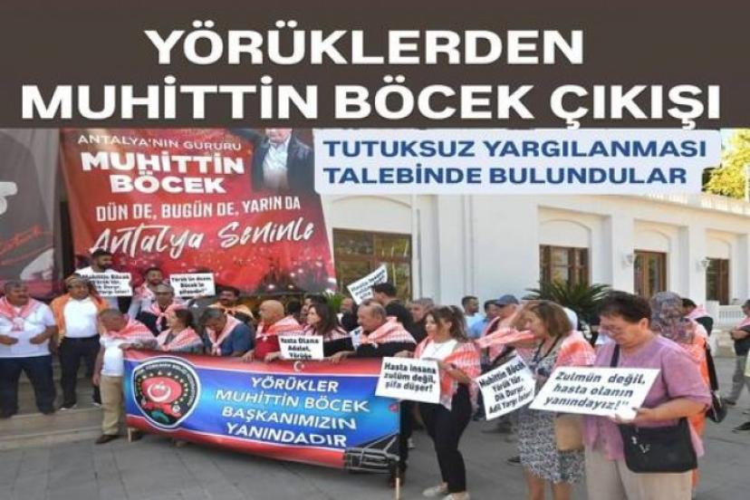 ■ Tutuklu bulunan Antalya Büyükşehir Belediye Başkanı Muhittin Böcek’in sağlık durumu cezaevinde kaldığı süre boyunca gündeme gelirken, Yörük Türkmen Dayanışma Platformu, Başkan Böcek’in tutuksuz yargılanması talebiyle Karaalioğlu Parkı’nda yaptığı açıklamada Cumhurbaşkanı'na seslendi.