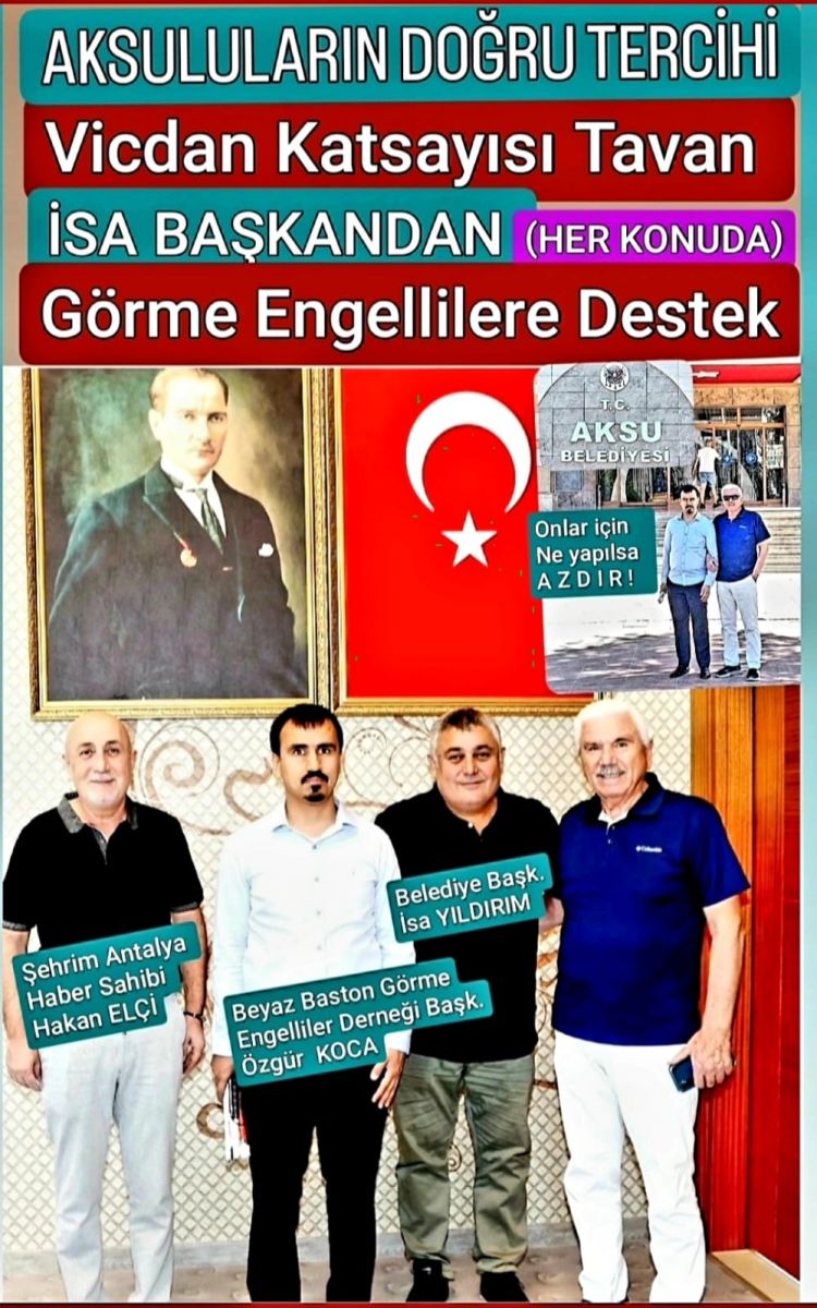 2009 - 2014 arası Aksu Belediye Başkanı olan İsa Yıldırım ile önemli kazanımlar elde eden, tarımın ve turizmin beşiği Aksuİlçesinde, 10 yıl aradan sonra yanlıştan dönerek yeniden İsa Yıldırım'la yola devam demenln mutluluğu yaşanıyor...
