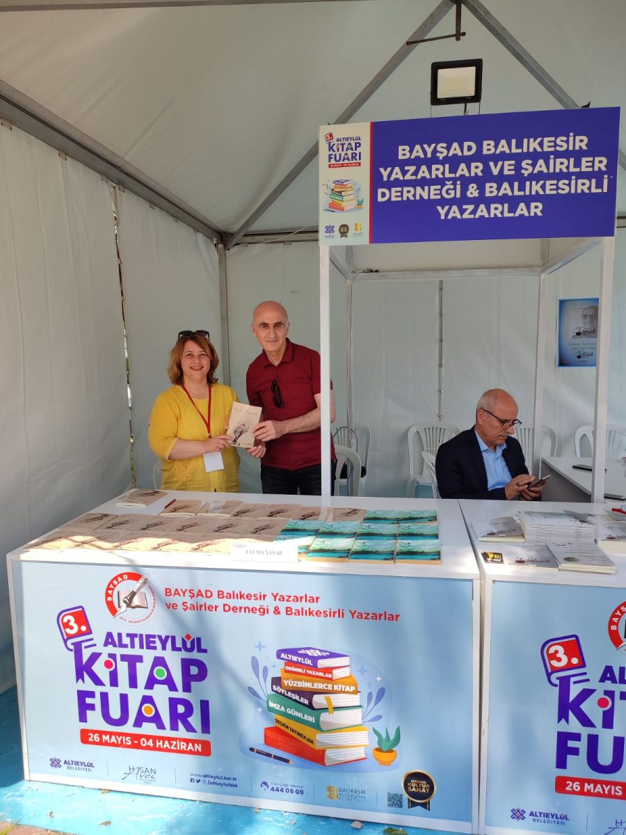 Birbirinden kıymetli yazar,şair arkadaşlarla konuşup sohbet etme şansını yakaladım. Binlerce eserin yer aldığı kitap fuarında, Balıkesirlilerin yakından tanıdığı, Cengiz Aytmatov Şiir Yarışması’nda mansiyon ödülü alan Fatma Yaşar da, Balıkesirli kitapseverlerle buluşup, kitaplarını imzalamaya başladı. Balıkesir Yazarlar ve Şairler Derneği (BAYŞAD) standında kitaplarını imzalayan sanatçı, Hemşerileriyle buluşmaktan mutluluk duyduğunu söyledi.